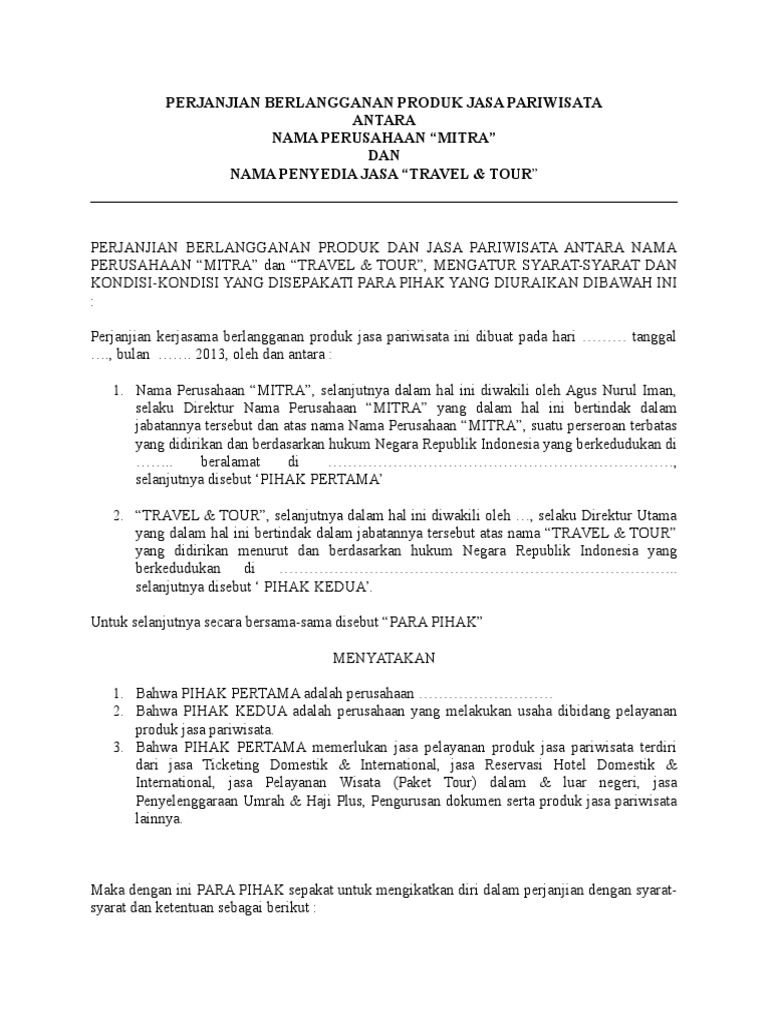 Contoh Surat Perjanjian Kerjasama Travel Dengan Perusahaan ... from gawecv.com Untuk memudahkan anda dalam mendownload surat perjanjian tersebut kami juga menyediakan soft. Contoh surat perjanjian kerjasama hotel dengan perusahaan. Seperti surat pernyataan kerja bermaterai, perjanjian, dan pernyataan belum menikah. Home » administrasi , kerjasama sekolah , mou kesehatan , perjanjian kerjasama » contoh surat perjanjian kerjasama sekolah dengan puskesmas. Ketika dua orang atau 2 instansi melakukan kesepakatan, biasanya akan diperlukan sebuah perjanjian atau jaminan untuk kepastian. Nah, agar memudahkan kita semua dalam berurusan dengan pihak travel, harus pihak sekolah menyiapkan hitam di atas putih. Selain itu, dibuat menggunakan format yang baik dan benar. Perjanjian kerjasama perusahaan kemitraan usaha dagang sekolah di atas materai.